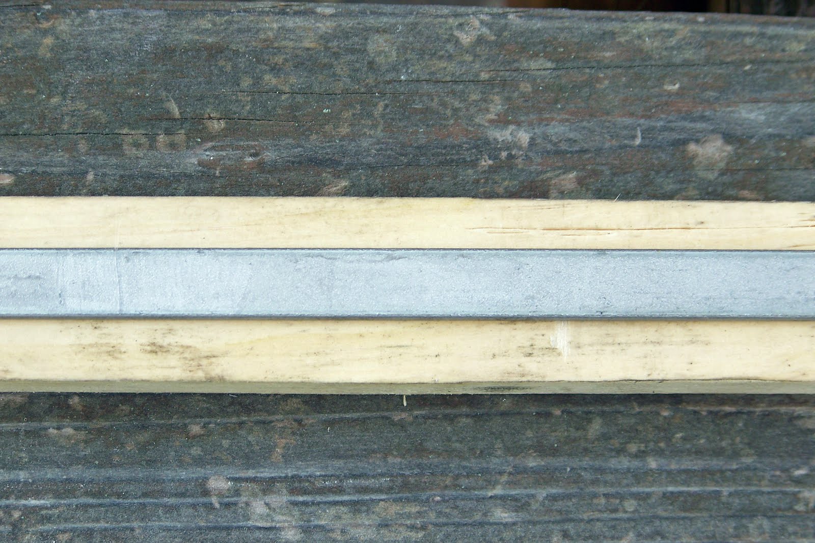 "Brushing" the stainless steel with a belt sander. Karen had to put the camera down and come sit on the piece I was working on because I needed two hands to get more force. I had to make sure I was keeping the belt as parallel to the stainless steel bar as possible so the brushing effect was straight. P.S. Freshly brushed stainless steel takes quite a while to cool off. Don't touch!!!
